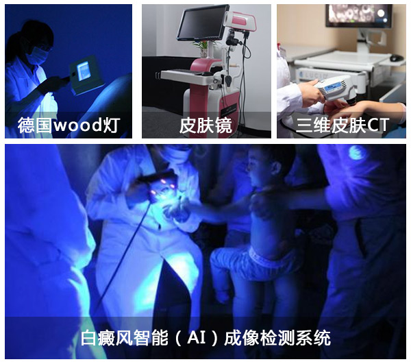 拥有华东地区先进的皮肤病因病理“黄金”检测中心,引进德国奥曼Wood灯,黑色素脱失检测仪等专业检测仪器,1分钟锁定病因,分析出白斑所处时期。由京沪湘专家亲诊,制定出最适合患者的诊疗方案,让效果更可靠。