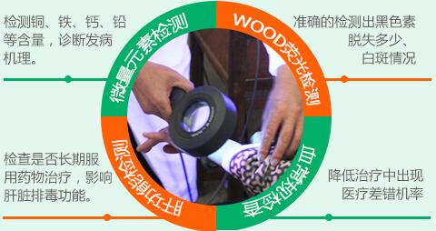 除了伍德灯确诊白癜风外,还有5项病因检测:肝肾功能检查、免疫力五项检查、微量元素检查、血常规11项检查。白癜风的病因很复杂,有可能是免疫力下降,有可能是微量元素的缺失等,通常是多种病因共同导致了白癜风,因此检查病因很重要。